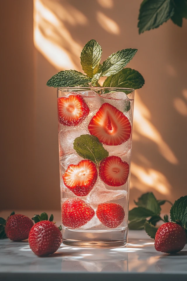 Now imagine serving this drink at a dinner party. A glass pitcher filled with fresh strawberry slices and ruby-red pomegranate seeds isn’t just a drink—it’s a show-stopping centerpiece. Guests pour themselves a glass and rave about its unique flavor and beautiful presentation.