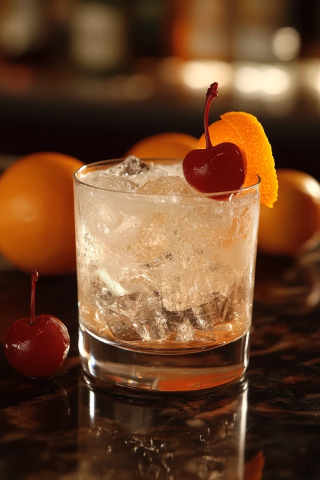 - Garnish and Serve: Add a lemon slice or peel and a maraschino cherry for a touch of elegance. Serve immediately and enjoy!